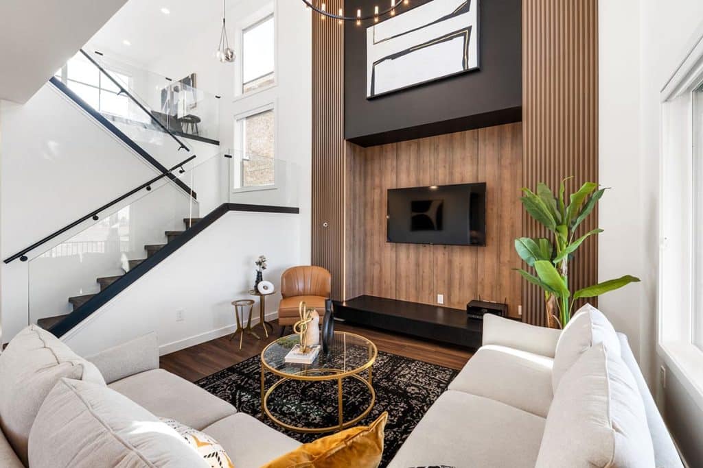 The clean exterior façade, finished with contemporary materials, sets the tone for what’s inside: a home where design and practicality come together seamlessly. The heart of the home features a bold, dark-themed kitchen with a striking brick backsplash that adds texture and character. The open-to-below living area with a stunning custom TV panel adds drama and visual flow, while the second floor offers a spacious loft that enhances the overall sense of openness. Step outside to enjoy the expansive deck and upper-level balcony—ideal for entertaining or unwinding in style. Every detail in 377 Parkview is thoughtfully designed to elevate everyday living with modern luxury.
